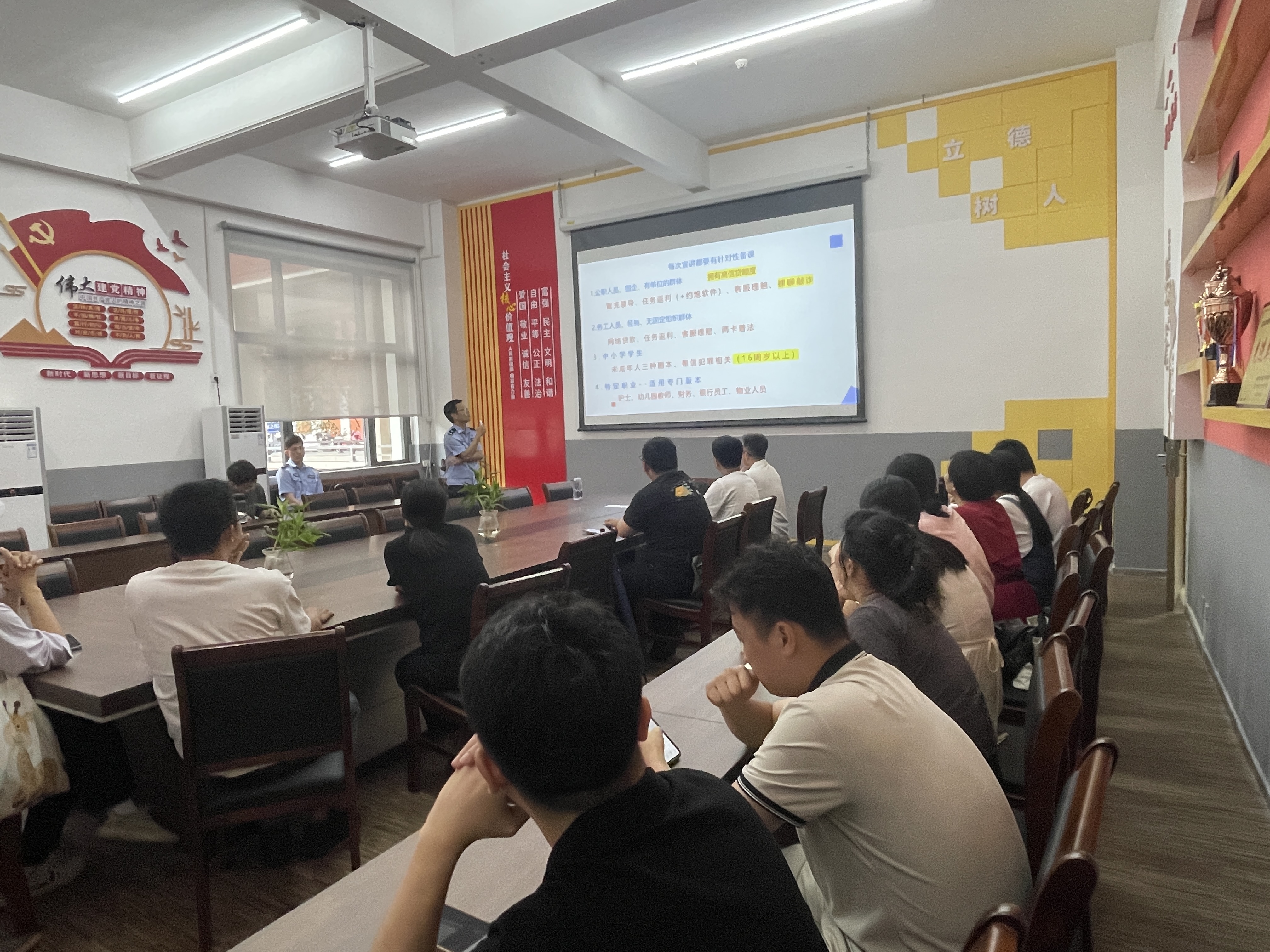 9月23日下午,大学生安全教育教研室在行政楼北111会议室开展专题教研活动,特邀莆田市公安局荔城分局反诈中心副指导员王志铭警官进校指导,围绕线下8课时反诈内容的备课工作展开深入交流,为提升大学生反诈教学质量注入专业力量。